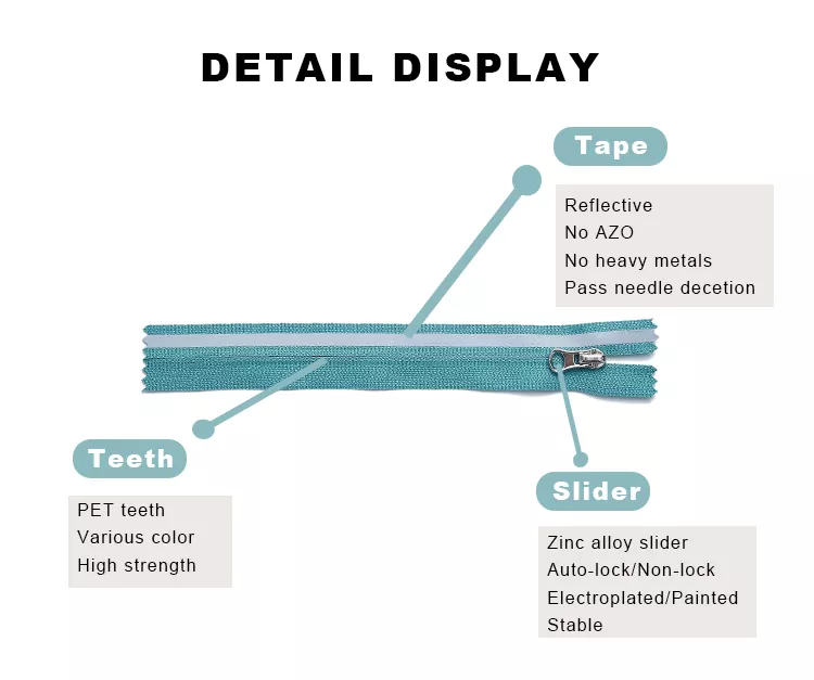 Ob für Sportbekleidung, Outdoor-Jacken, Rucksäcke, Uniformen oder Sicherheitsausrüstung, die Nylon-Reißverschlüsse mit reflektierendem Webstreifen von TRC vereinen funktionalen Schutz mit moderner Ästhetik. Auch nach mehrmaligem Waschen und Abrieb behält die reflektierende Beschichtung der TRC-Nylon-Reißverschlüsse mit reflektierenden Webstreifen ihre Helligkeit und sorgt so für dauerhafte Sicherheit. Mit über 20 Jahren Erfahrung in der Herstellung von Reißverschlüssen liefert TRC zuverlässige Qualität, flexible Lösungen und äußerst wettbewerbsfähige Preise.